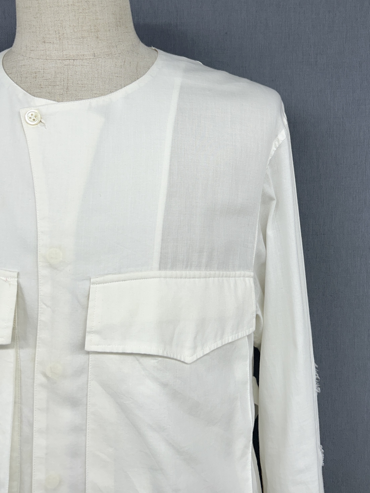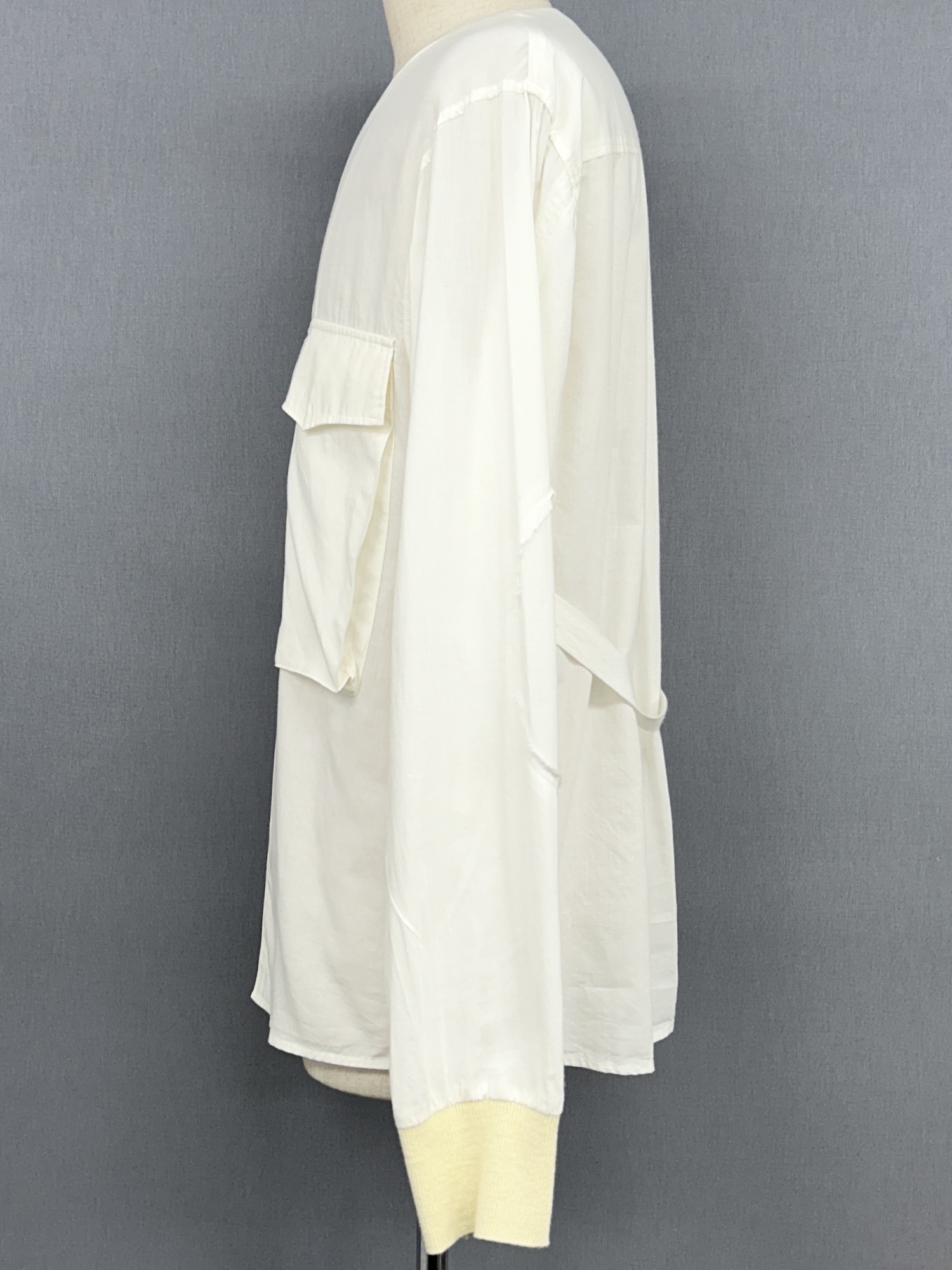 袖リブ切替、ノーカラー