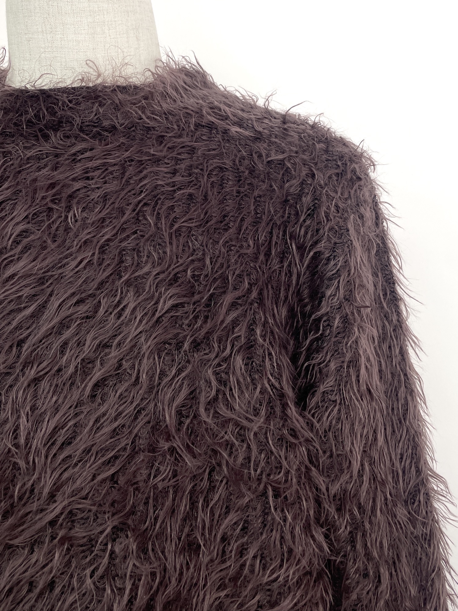無地、クルーネック、長袖、シャギーニット
