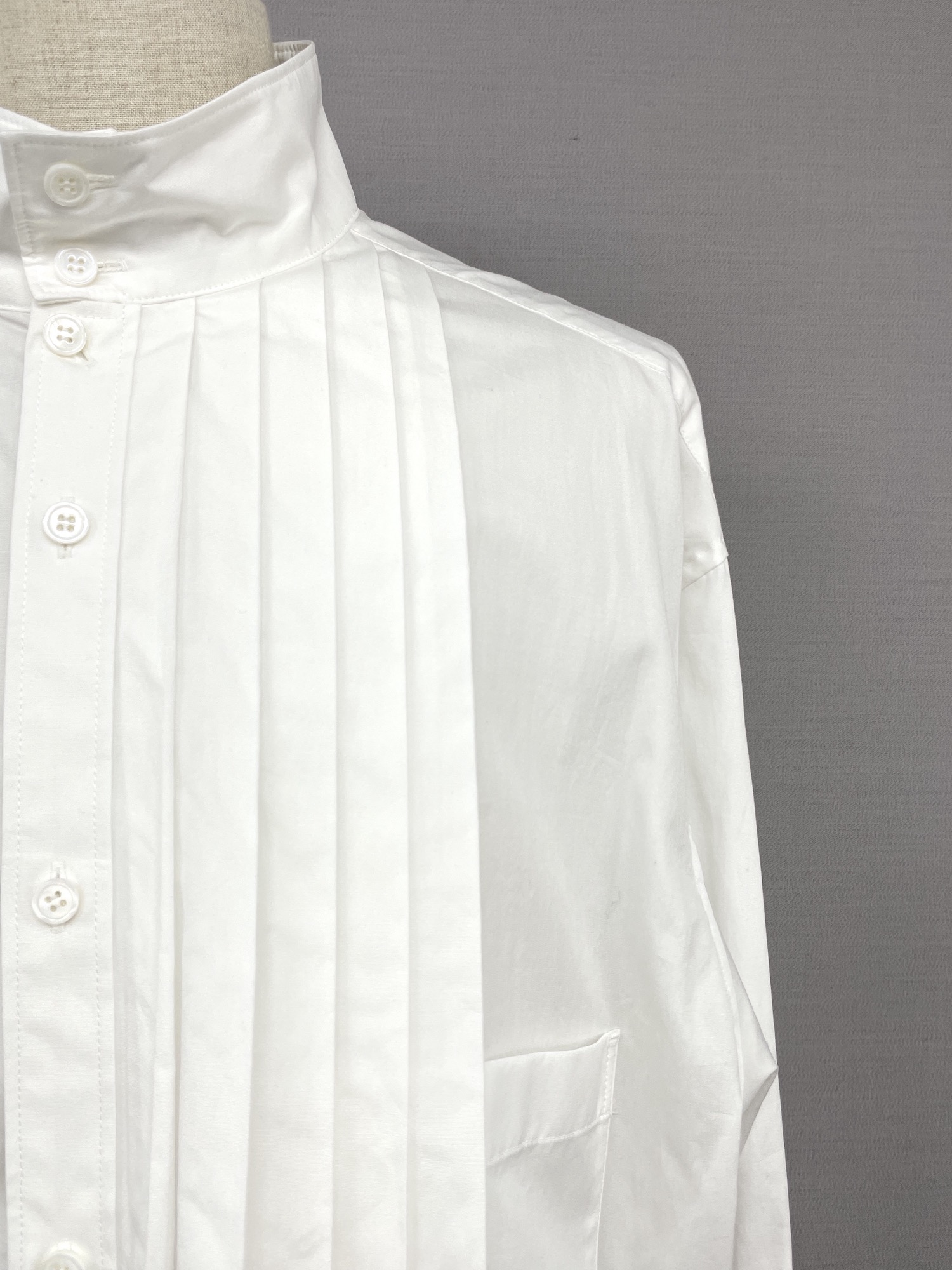 コットン、無地、プリーツ、胸ポケット