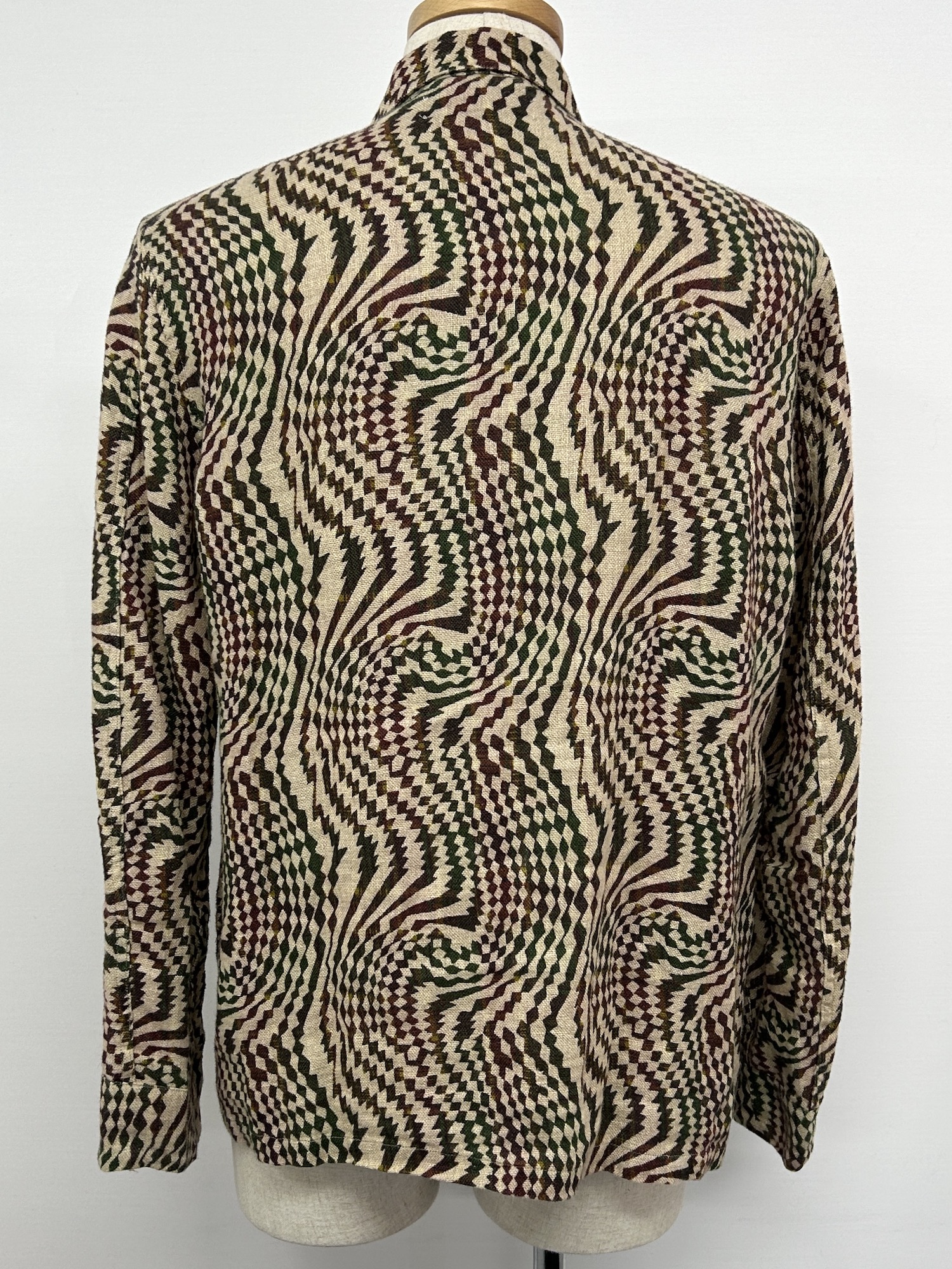 リネン、総柄、左胸ポケット、レギュラーカラー