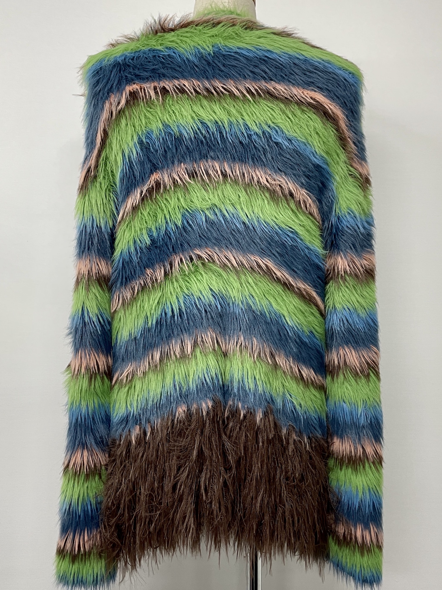 クルーネック、長袖、ボーダー、シャギーニット