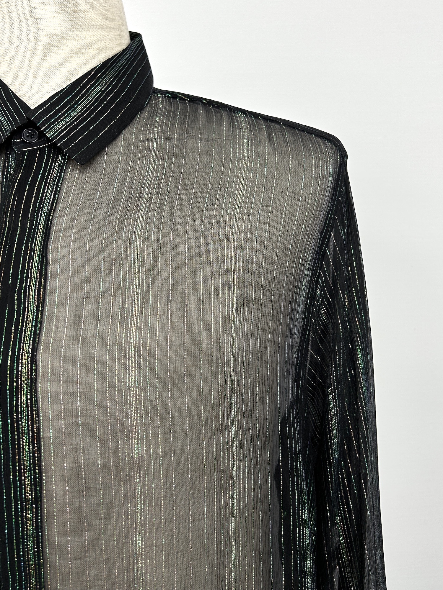 シルク、ストライプ、ラメ(グリーン)