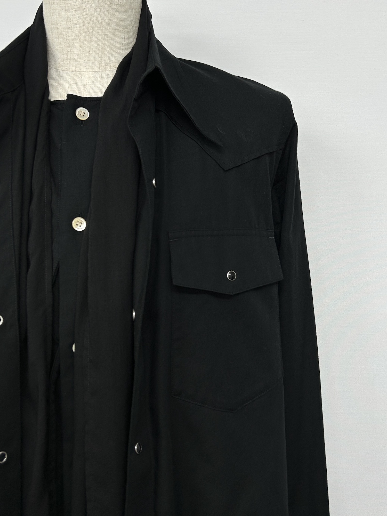 コットン、シルク、無地、両胸ポケット、レイヤード風