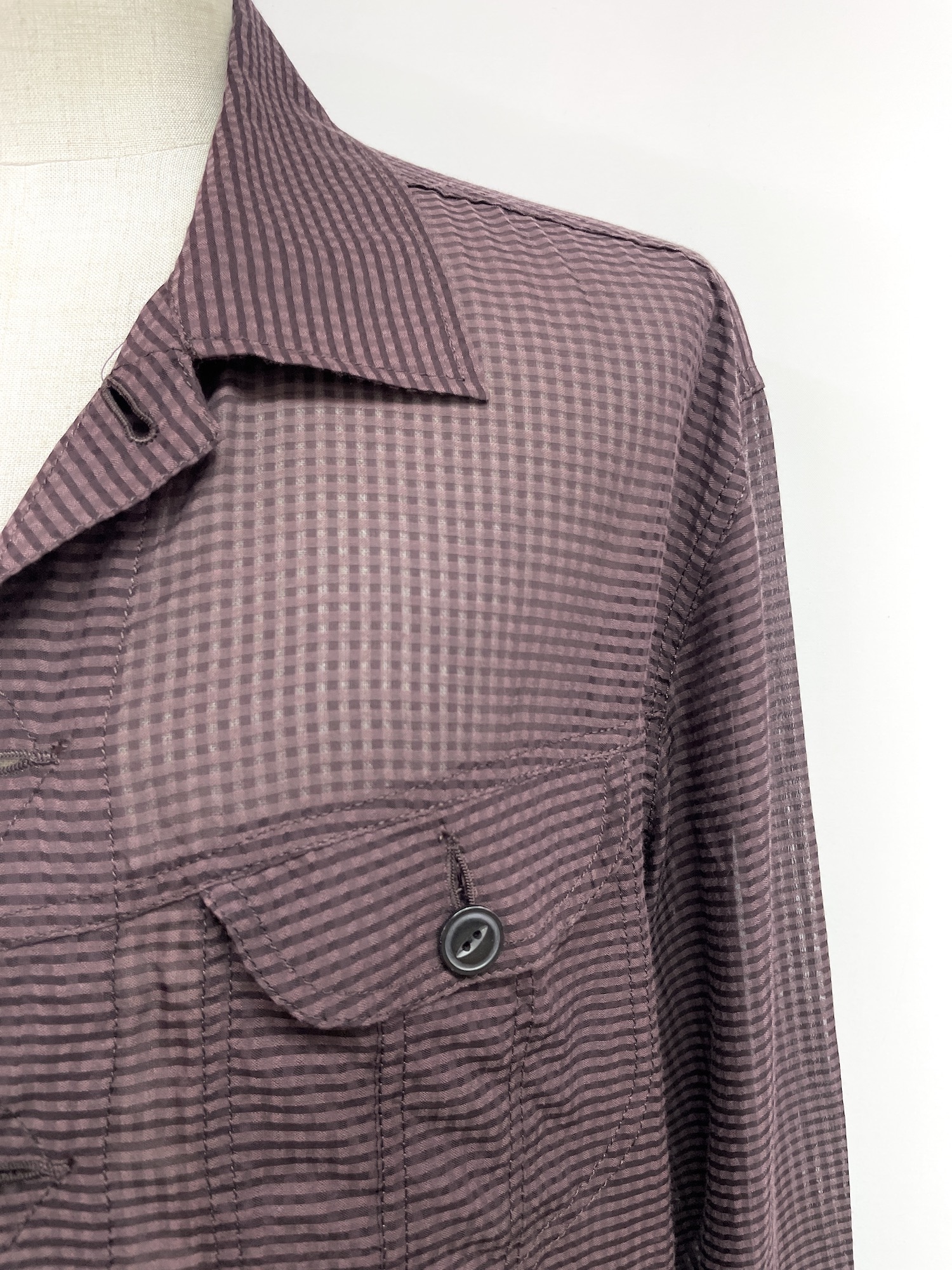 レーヨン、チェック、シアー、身頃ポケット