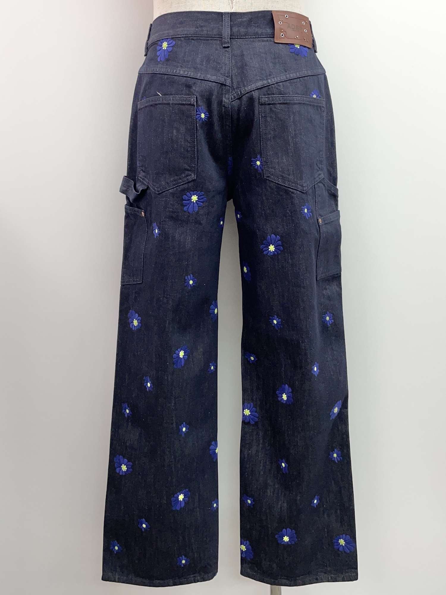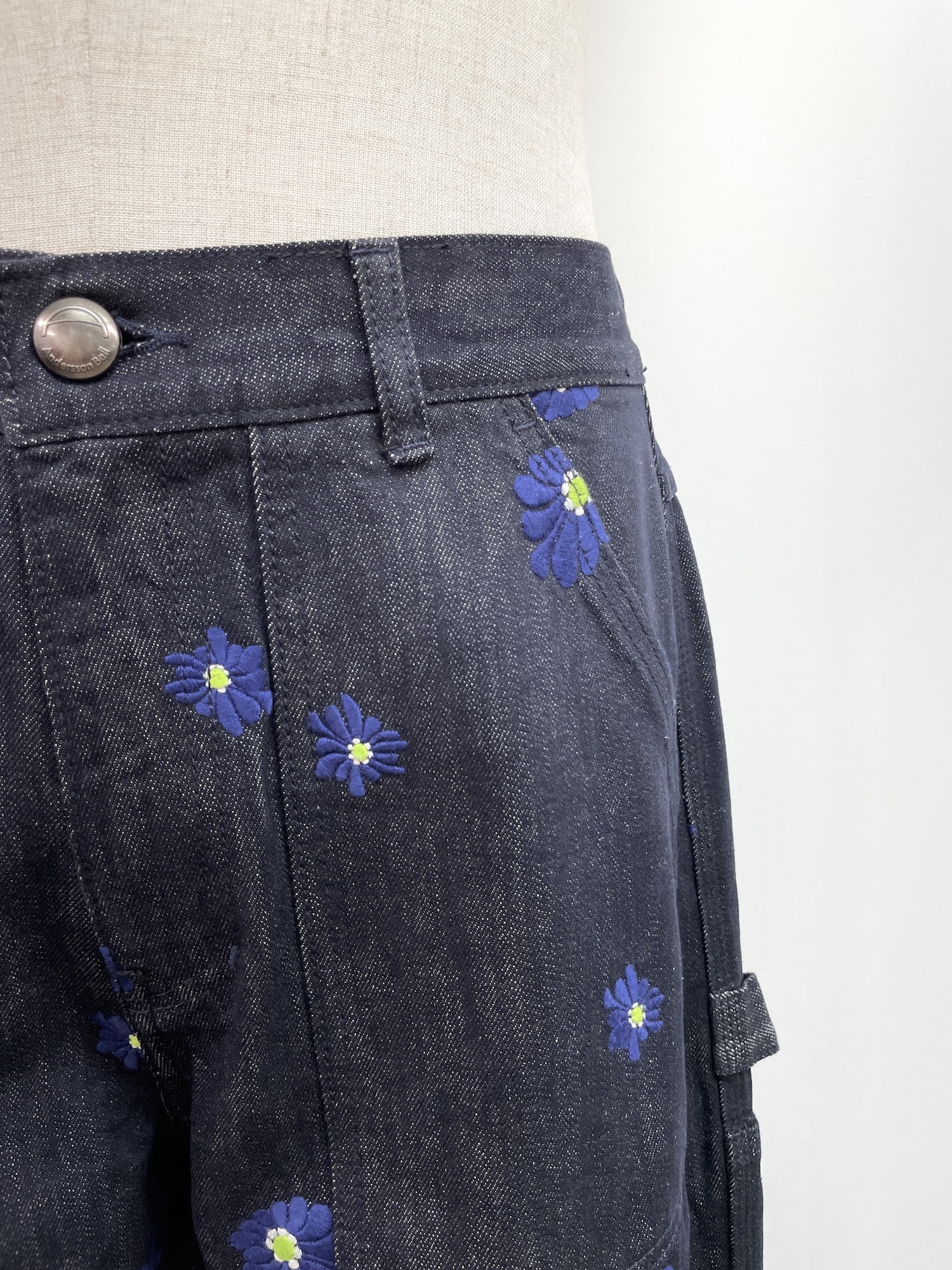 コットン、デニム、花柄(刺繍)