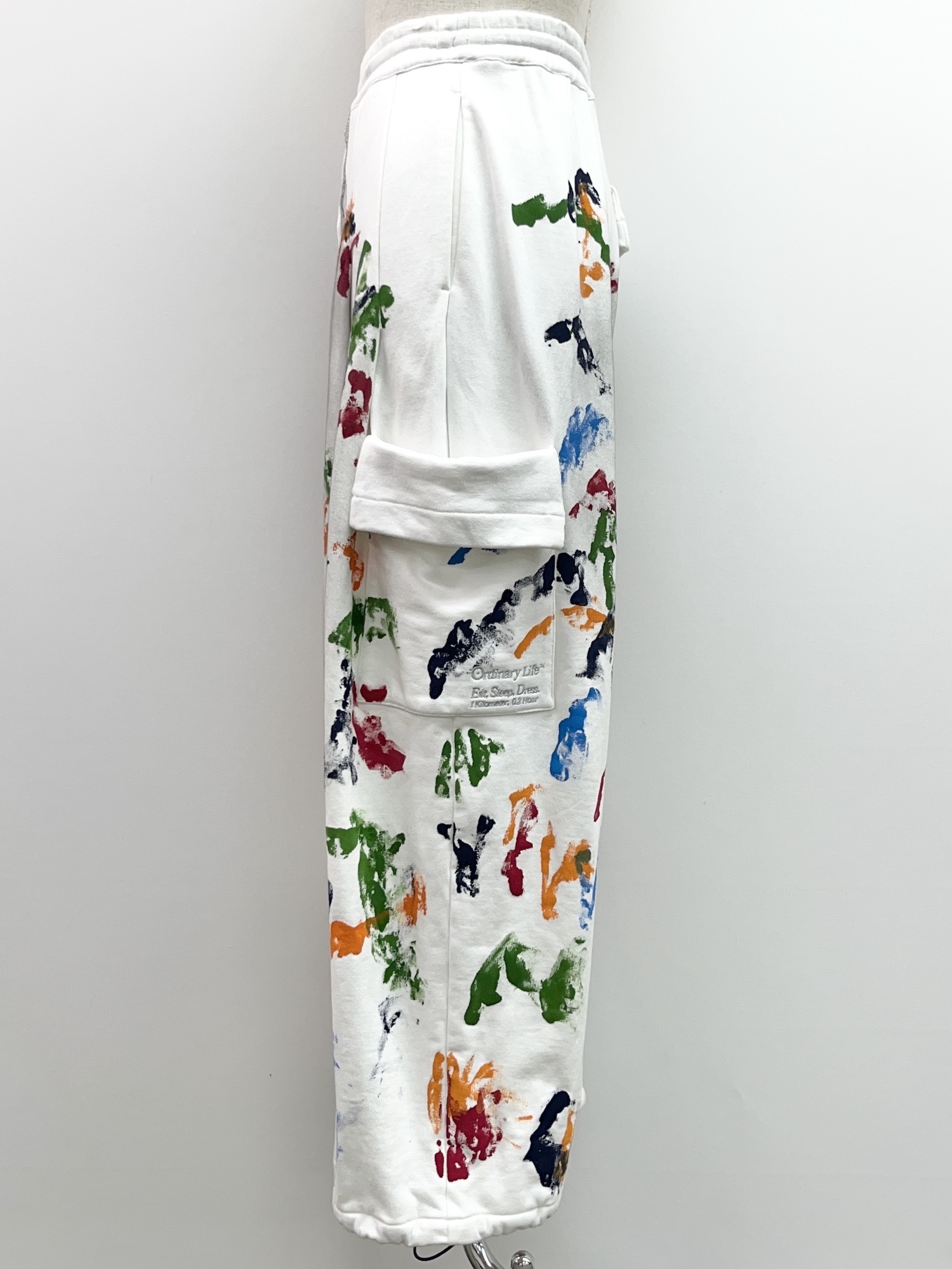 コットン、ペンキ加工、ウエストゴム、ドローコード