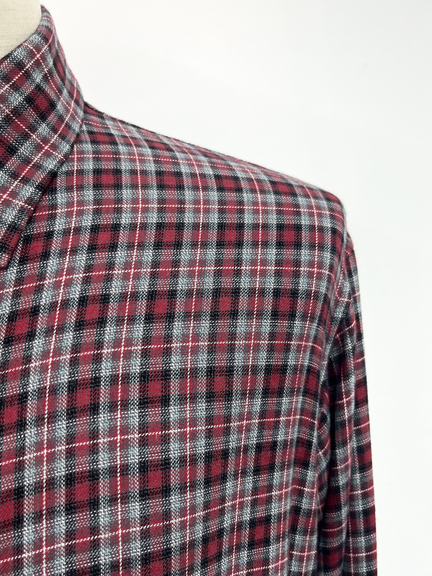 レーヨン、チェック、レギュラーカラー
