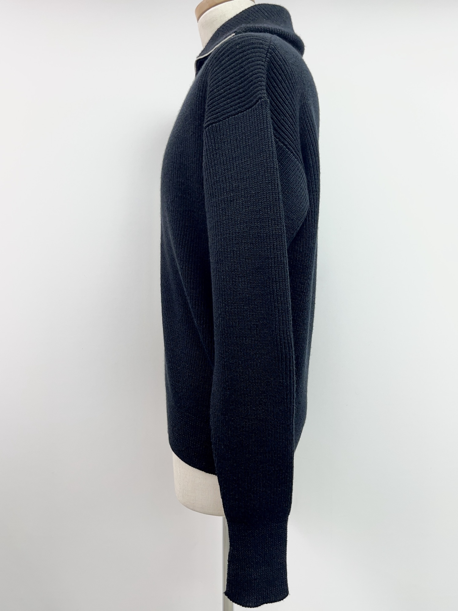 ウール、無地、ハーフジップ、リブ