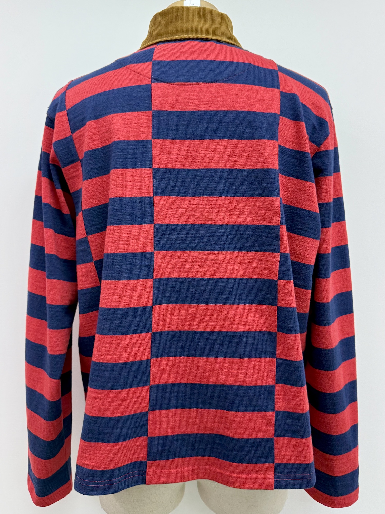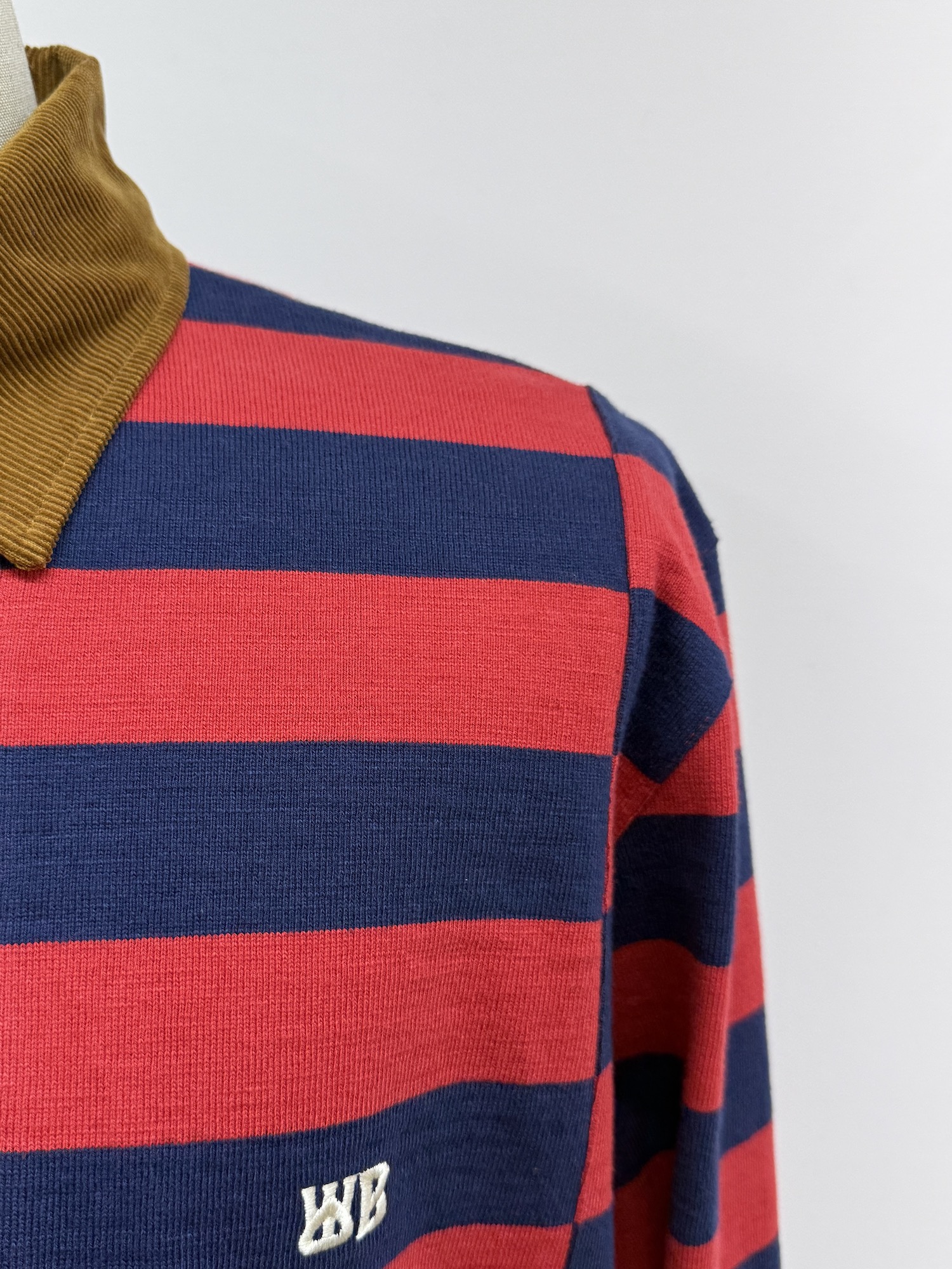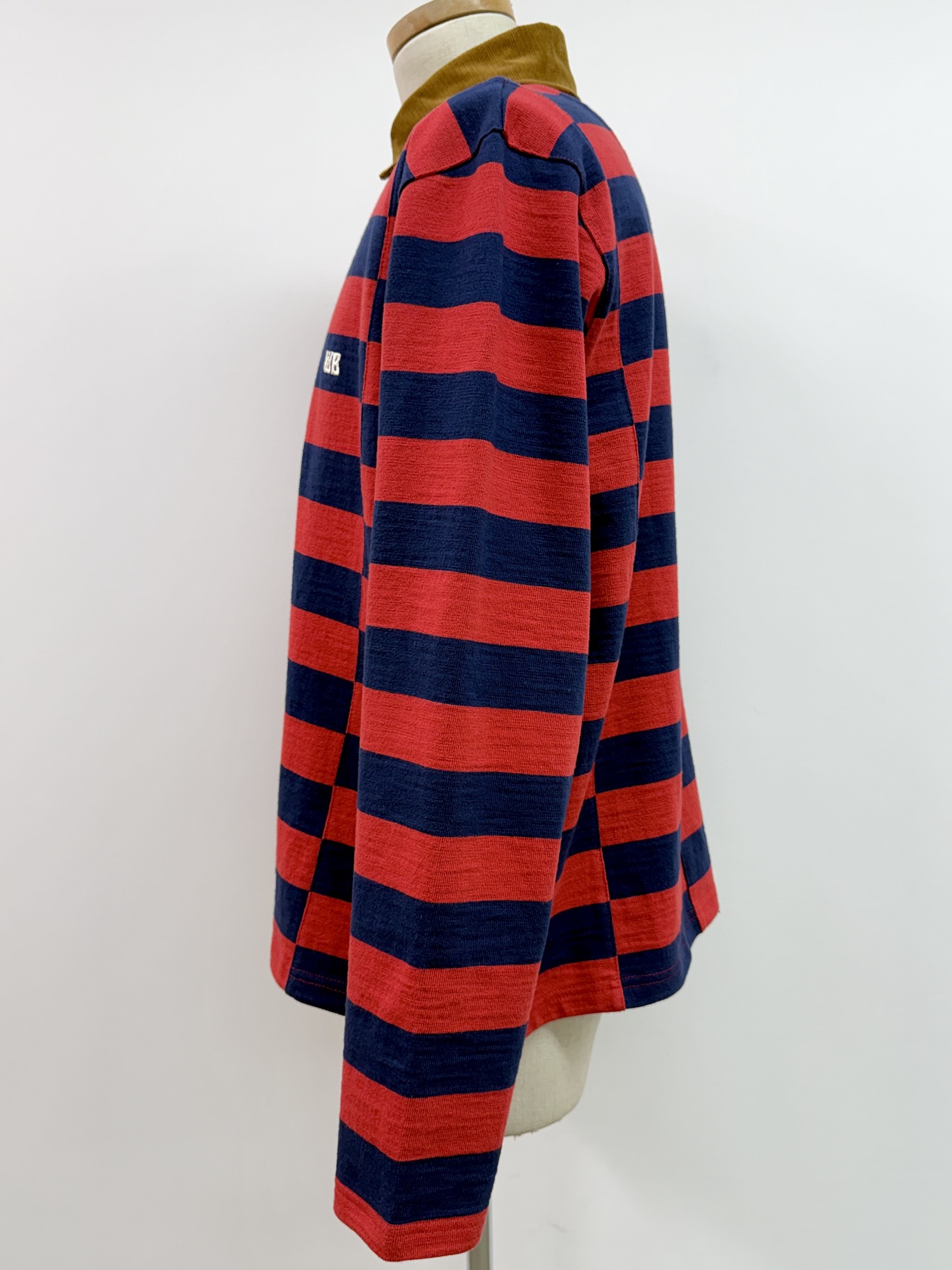 襟コーデュロイ、長袖、ラガーシャツ