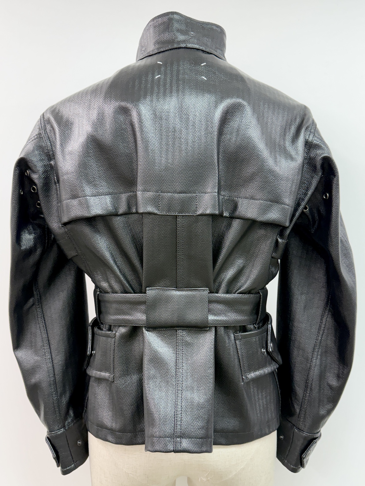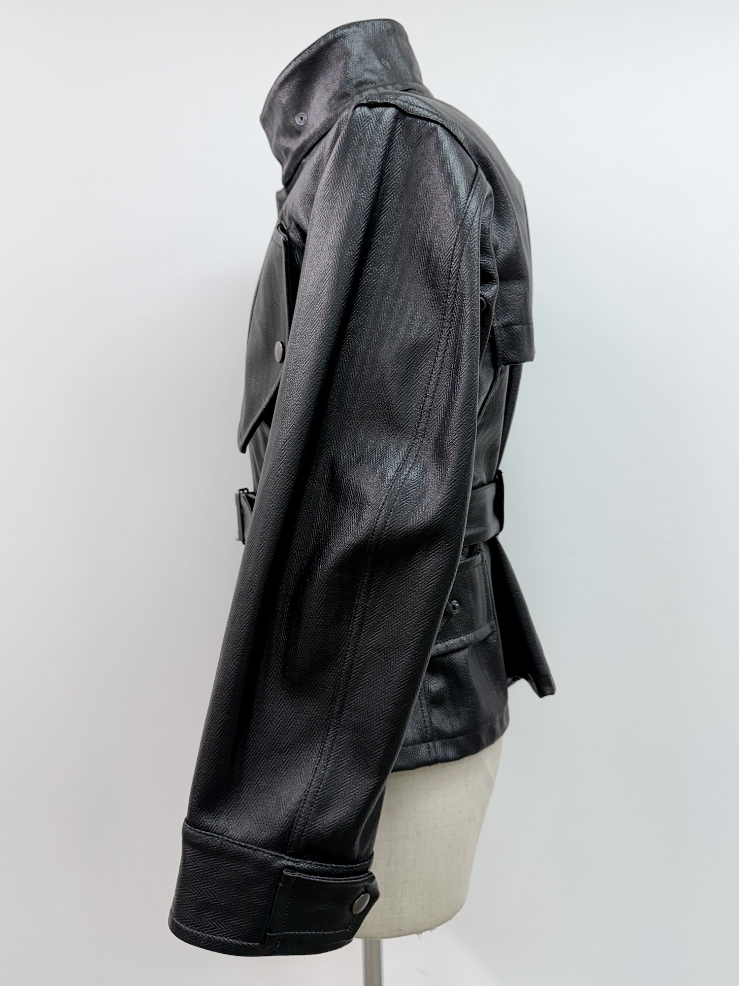 スナップボタン、スタンドカラー、ベルト付
