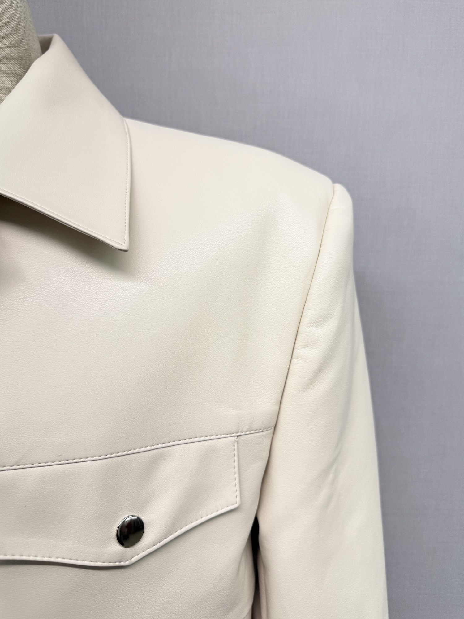フェイクレザー、無地、胸ポケット