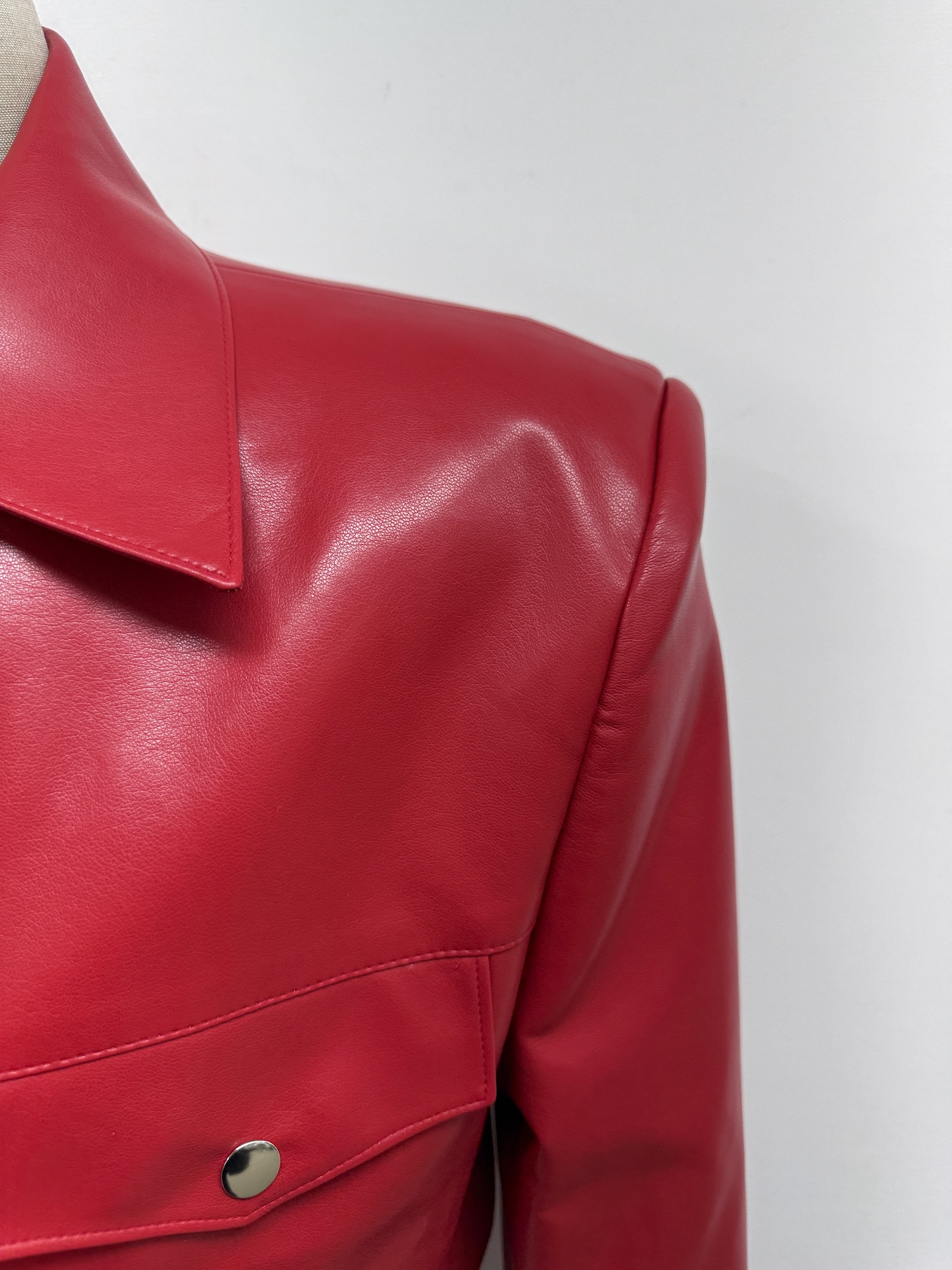 フェイクレザー、無地、胸ポケット