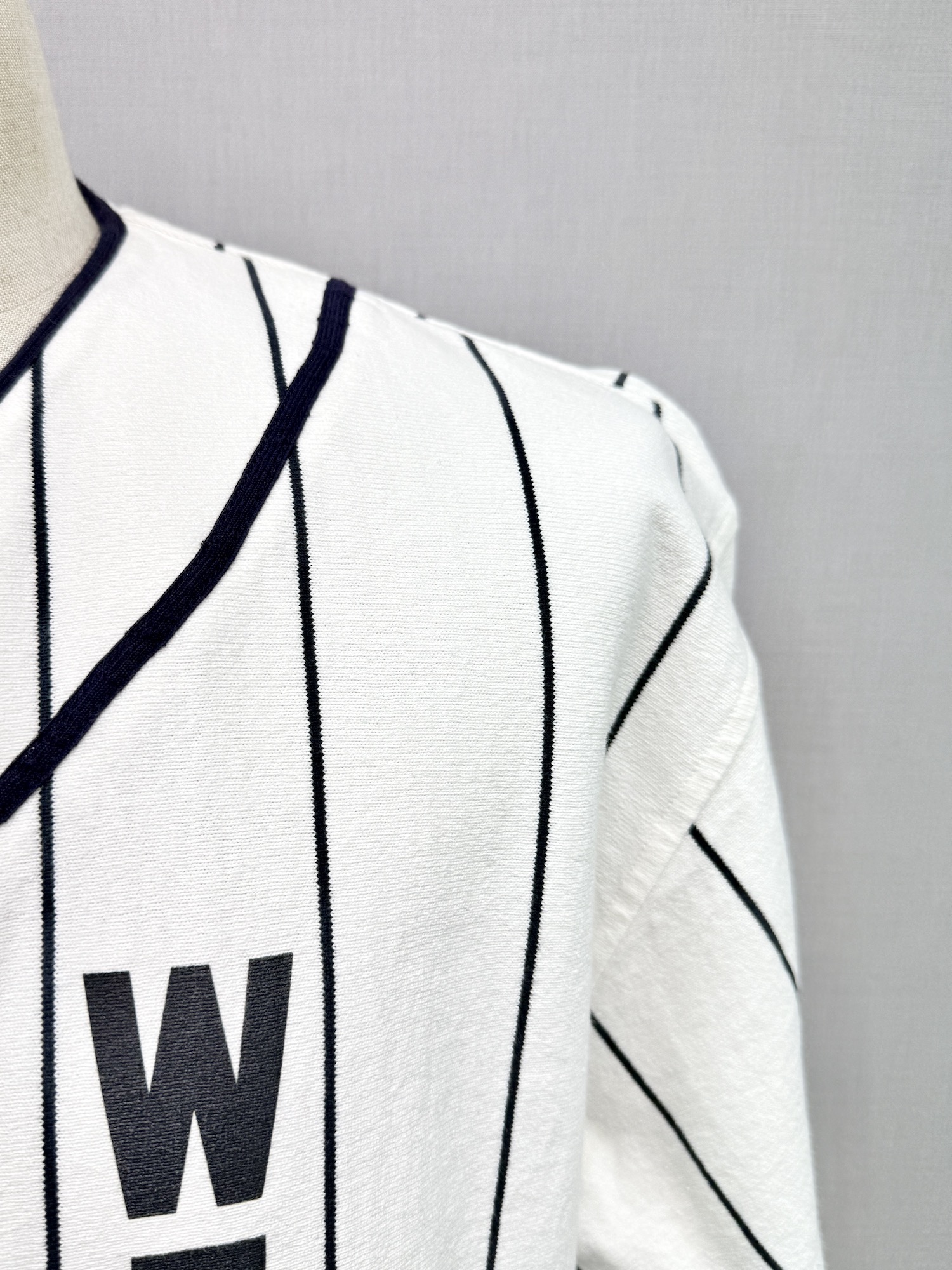ノーカラー、ベースボールシャツ