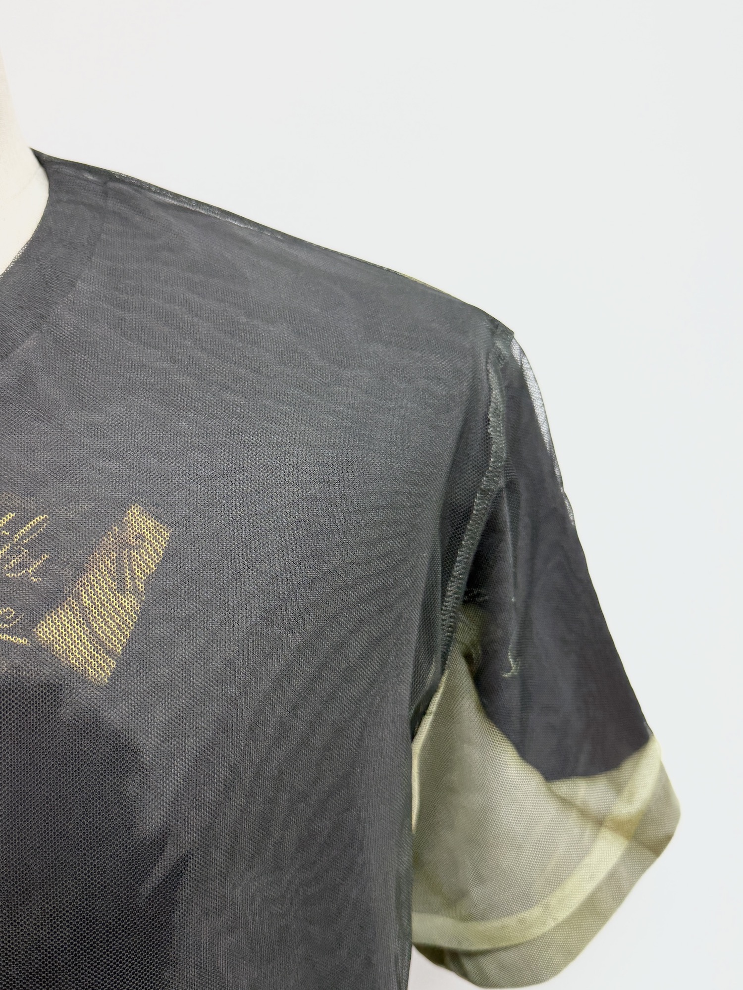 メッシュ、シアー、クルーネック、半袖