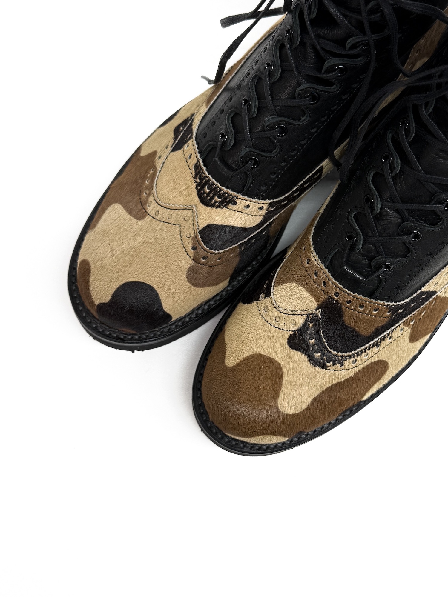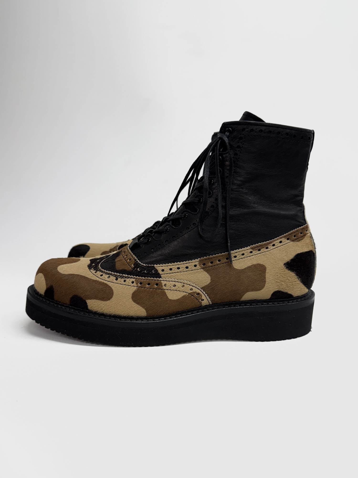 ハラコ、迷彩柄、ウィングチップ