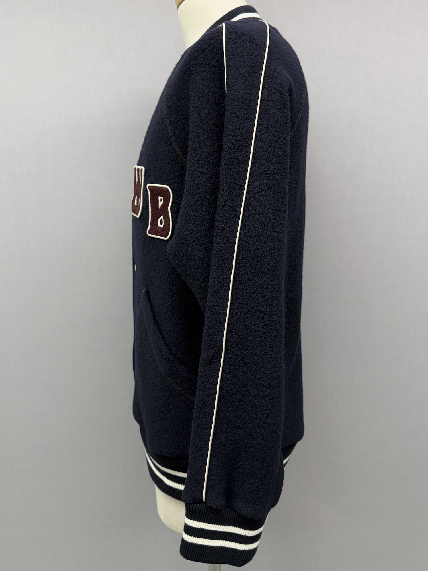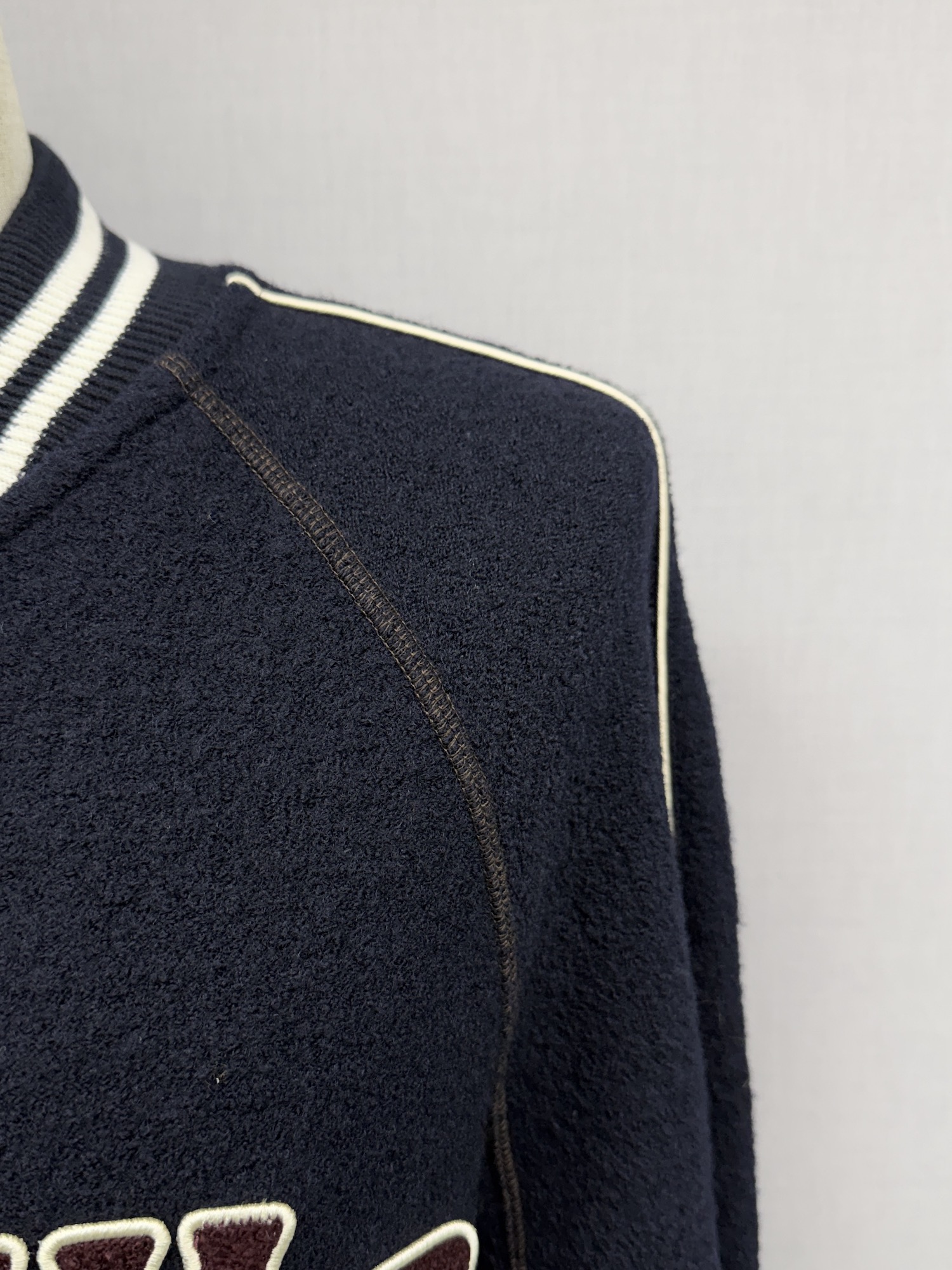 ウール、無地、ロゴワッペン、ステッチ、パイピング