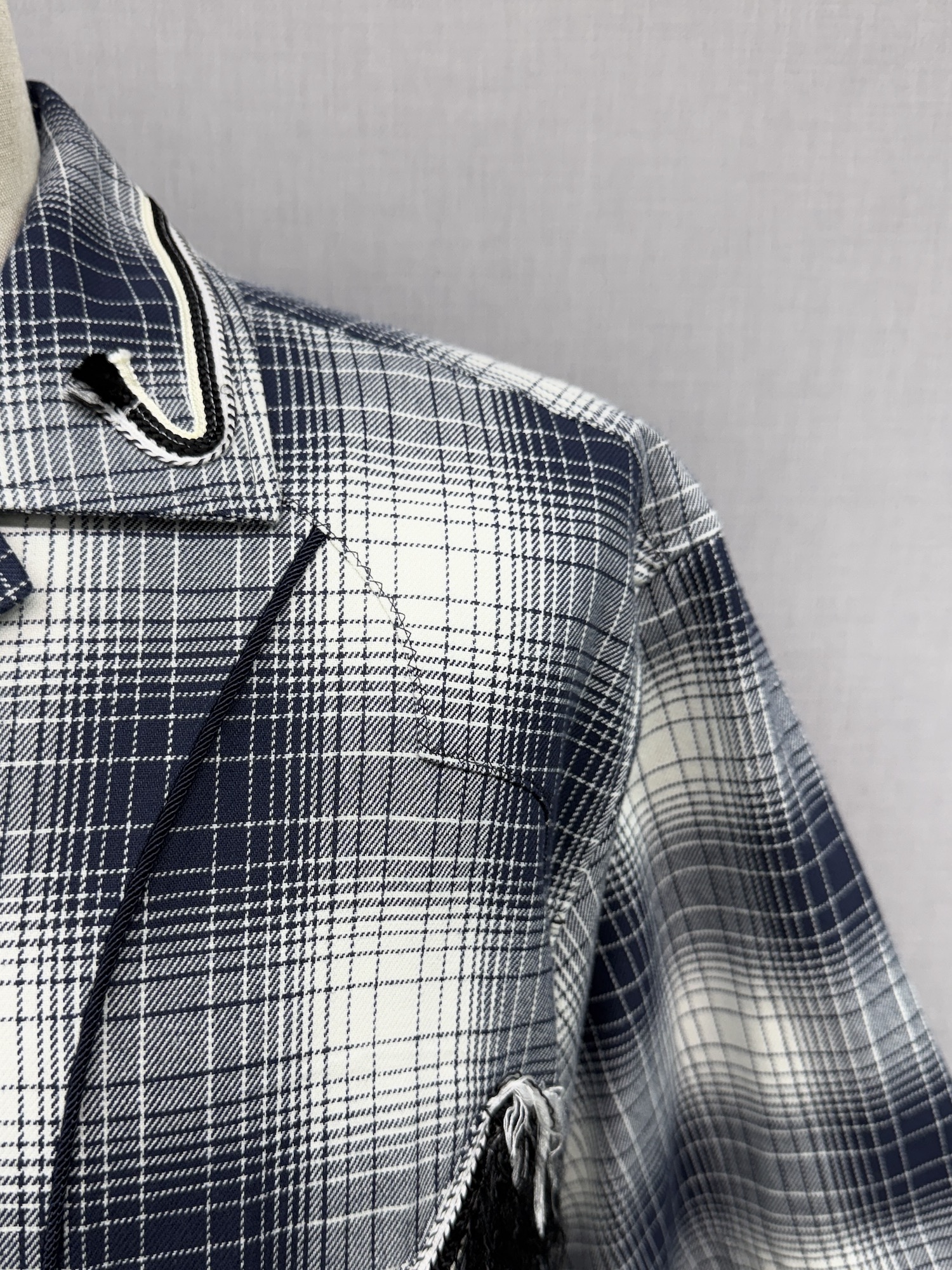 パイピング、スナップボタン、オープンカラー