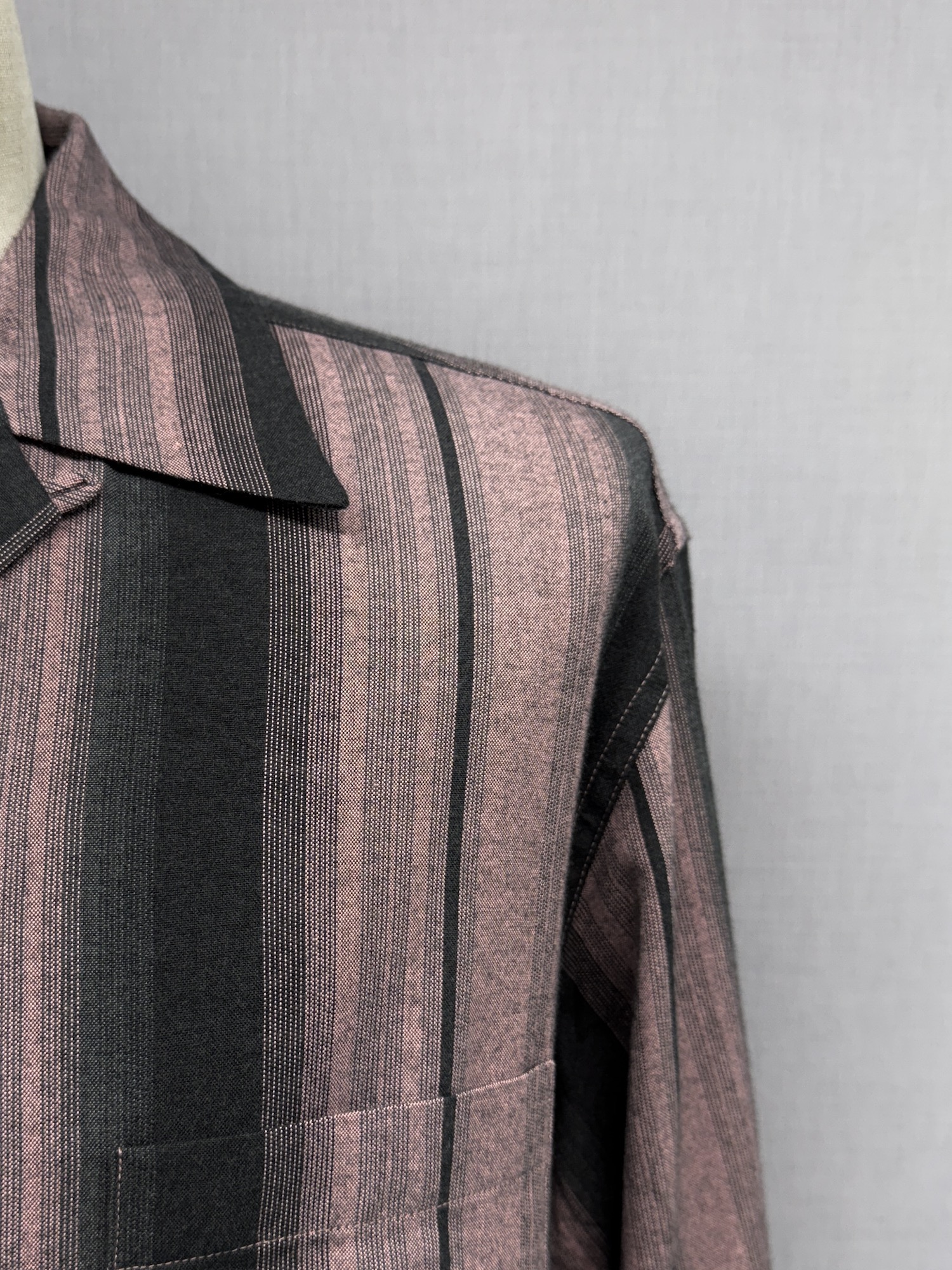 レーヨン、ストライプ、胸ポケット