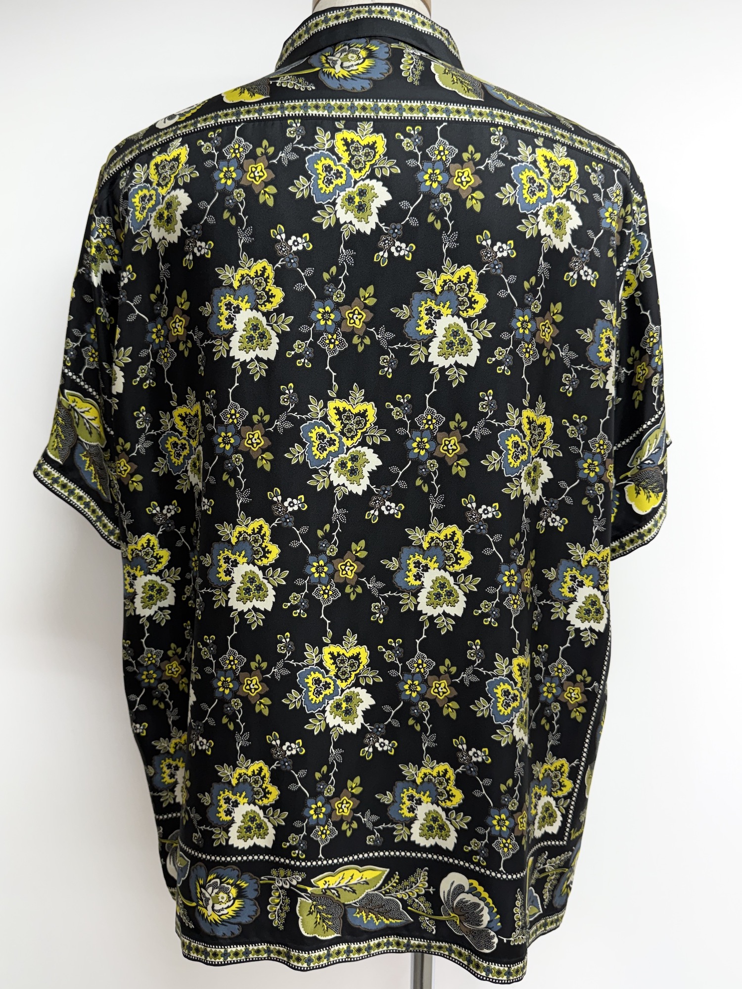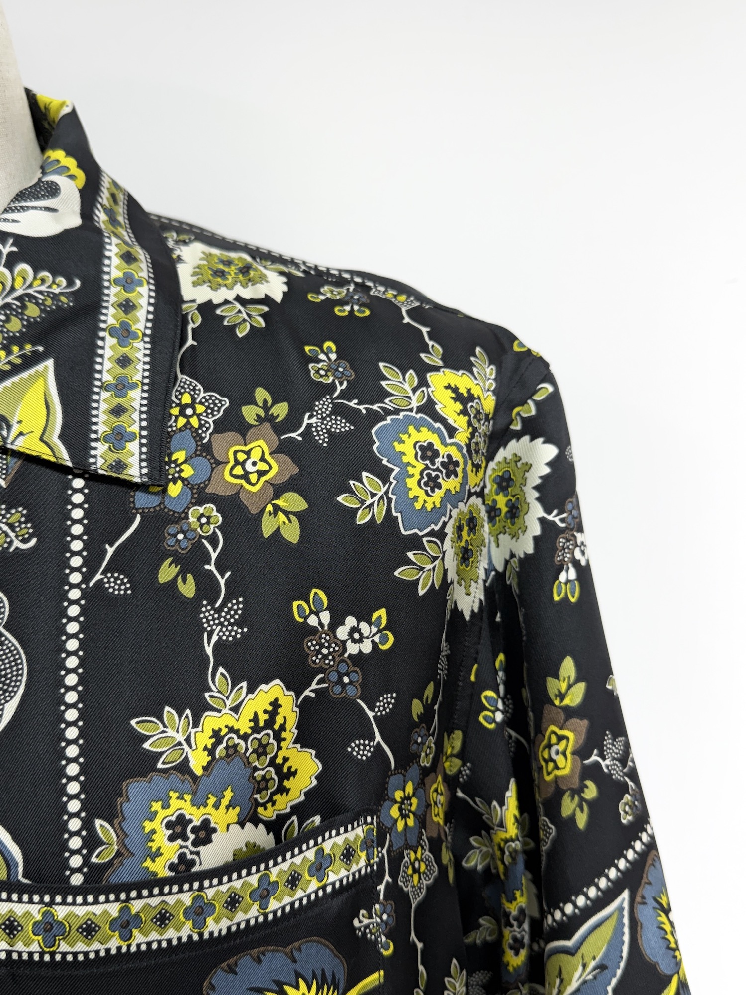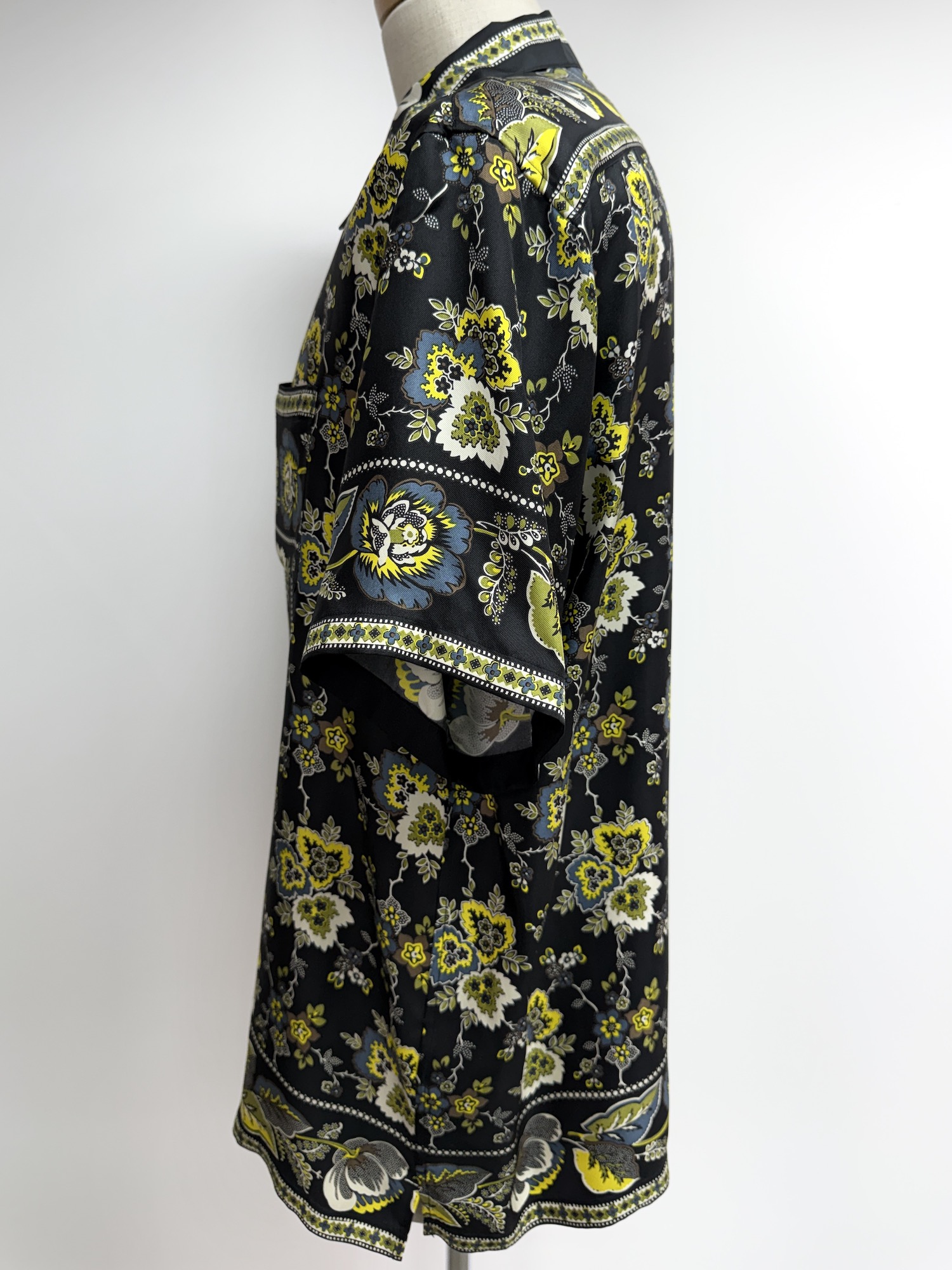 シルク、ボタニカル柄、胸ポケット