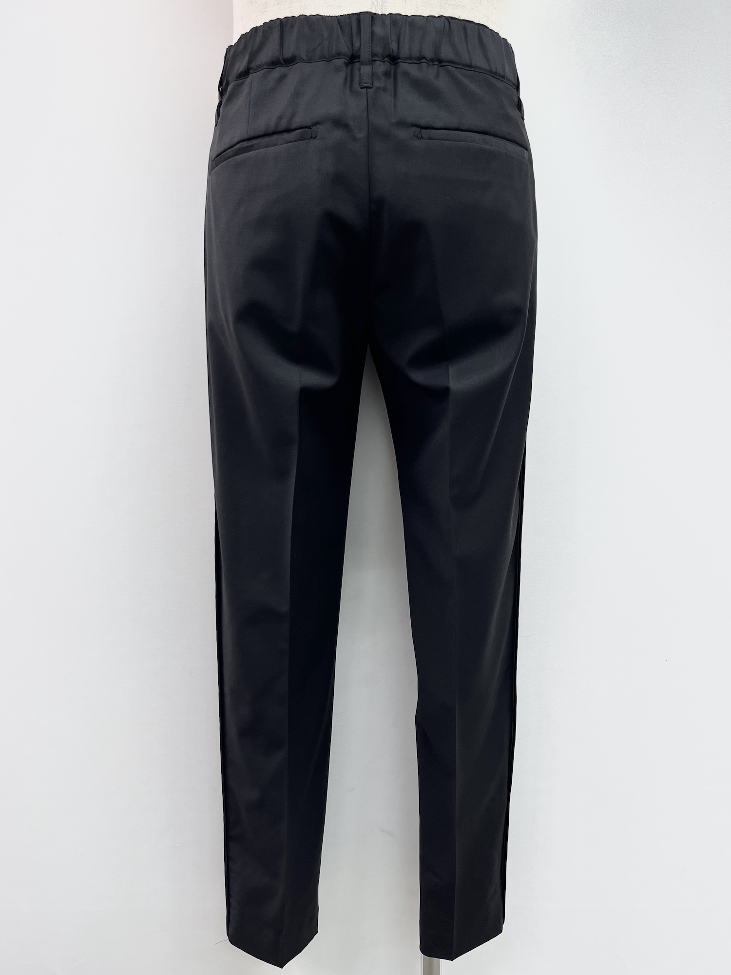 ノープリーツ、ウエストゴム、テーパード