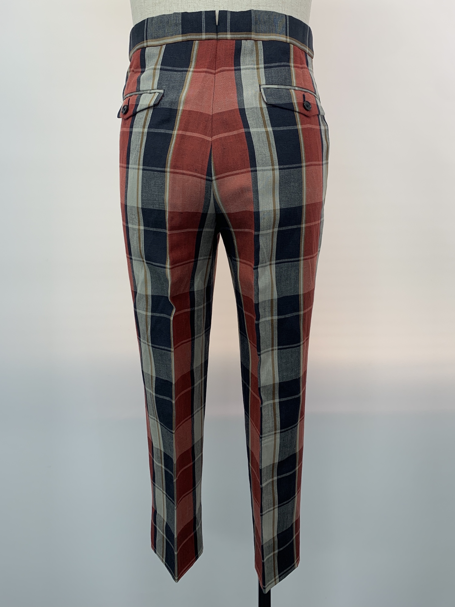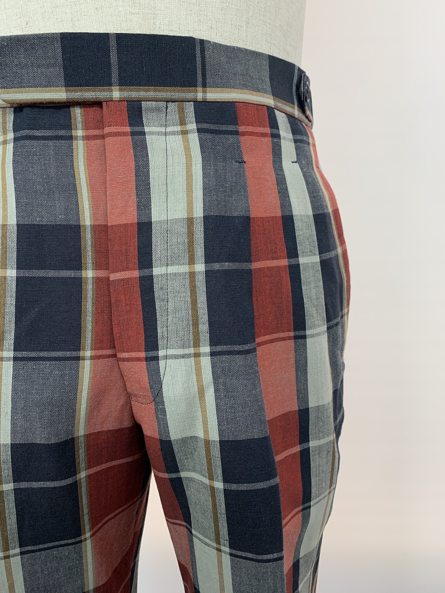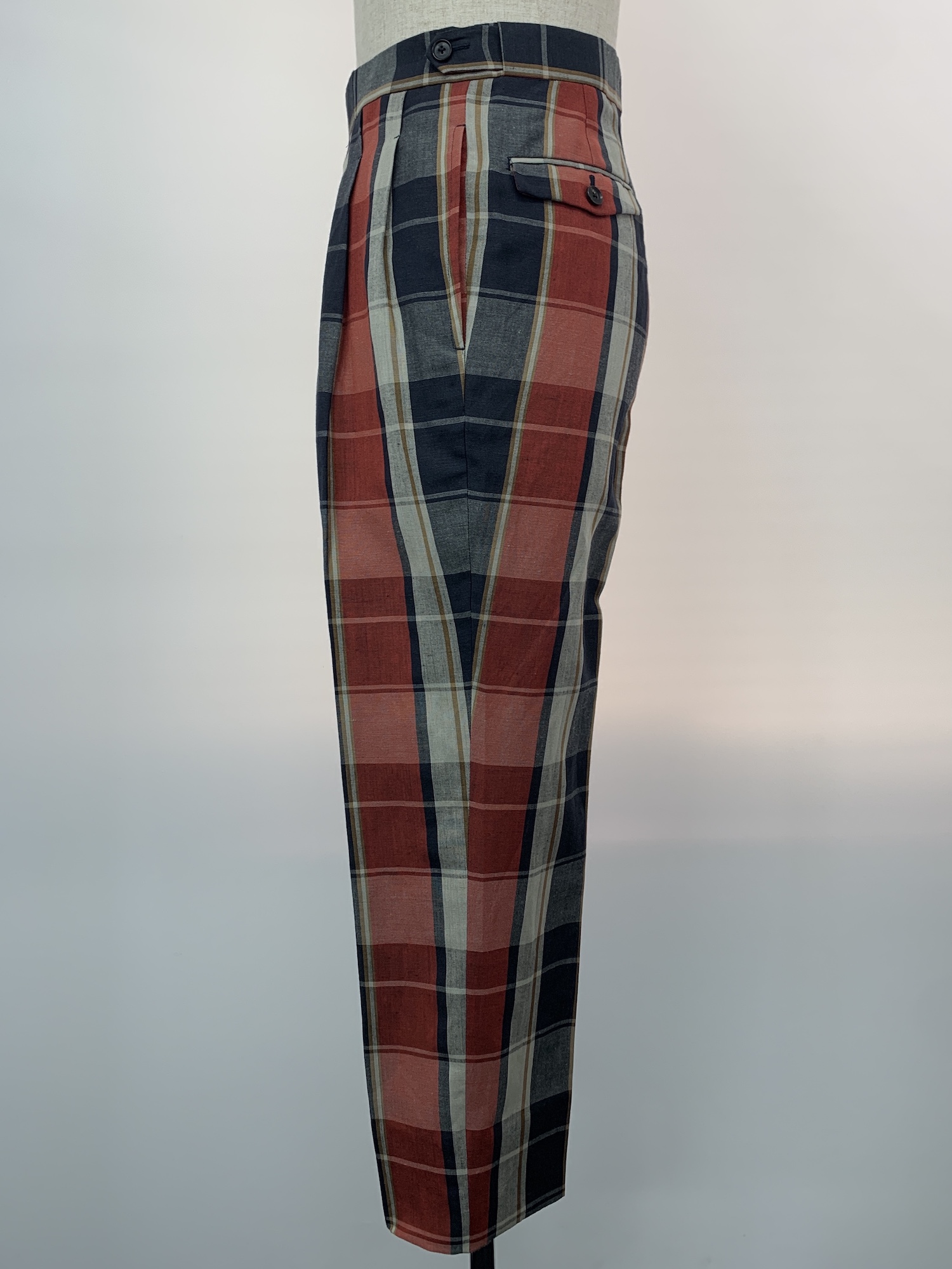 ウール、リネン、チェック、2プリーツ、
